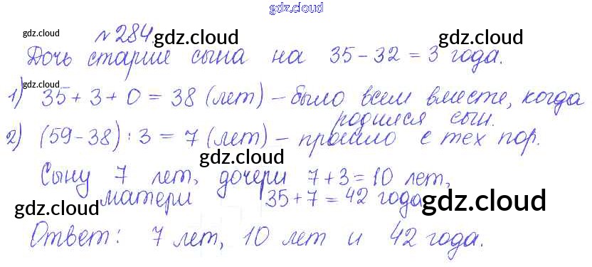 Ответ на задание 284 Сборник задач и упражнений Математика за 5 (пятый) класс Гамбарин, Зубарева 2011 ФГОС онлайн и без номера телефона.