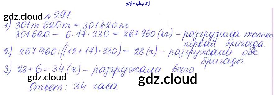 Ответ на задание 291 Сборник задач и упражнений Математика за 5 (пятый) класс Гамбарин, Зубарева 2011 ФГОС онлайн и без номера телефона.