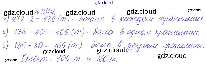 Ответ на задание 294 Сборник задач и упражнений Математика за 5 (пятый) класс Гамбарин, Зубарева 2011 ФГОС онлайн и без номера телефона.