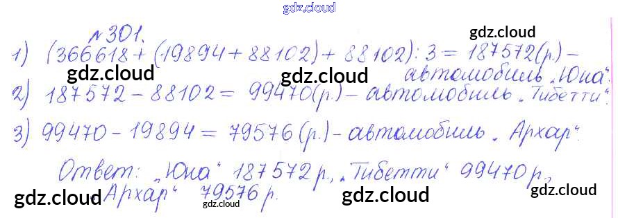 Ответ на задание 301 Сборник задач и упражнений Математика за 5 (пятый) класс Гамбарин, Зубарева 2011 ФГОС онлайн и без номера телефона.