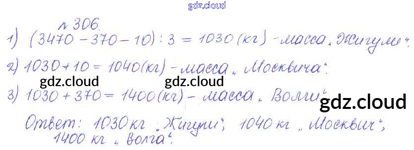 Ответ на задание 306 Сборник задач и упражнений Математика за 5 (пятый) класс Гамбарин, Зубарева 2011 ФГОС онлайн и без номера телефона.