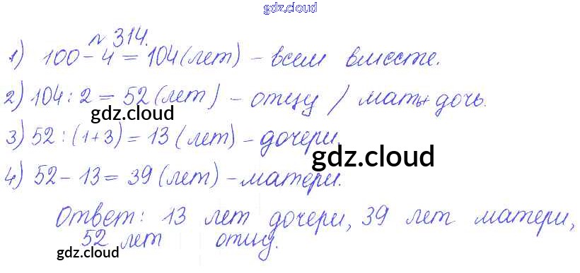 Ответ на задание 314 Сборник задач и упражнений Математика за 5 (пятый) класс Гамбарин, Зубарева 2011 ФГОС онлайн и без номера телефона.