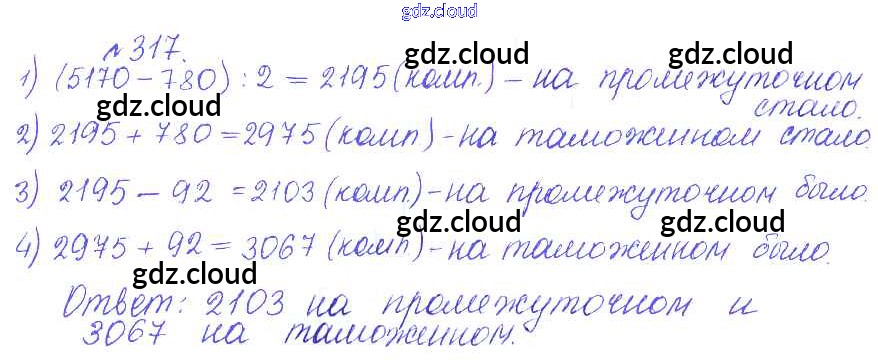 Ответ на задание 317 Сборник задач и упражнений Математика за 5 (пятый) класс Гамбарин, Зубарева 2011 ФГОС онлайн и без номера телефона.