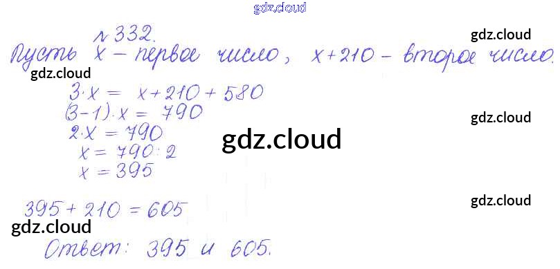 Ответ на задание 332 Сборник задач и упражнений Математика за 5 (пятый) класс Гамбарин, Зубарева 2011 ФГОС онлайн и без номера телефона.