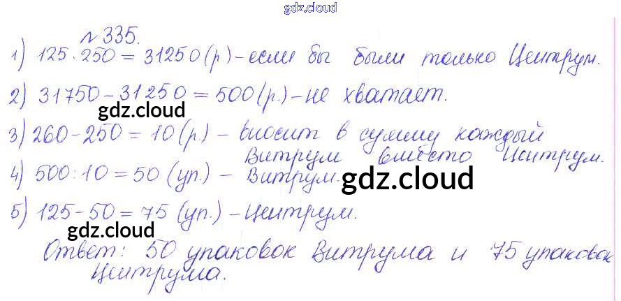 Ответ на задание 335 Сборник задач и упражнений Математика за 5 (пятый) класс Гамбарин, Зубарева 2011 ФГОС онлайн и без номера телефона.