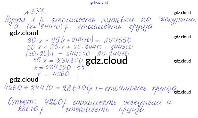 Ответ на задание 337 Сборник задач и упражнений Математика за 5 (пятый) класс Гамбарин, Зубарева 2011 ФГОС онлайн и без номера телефона.