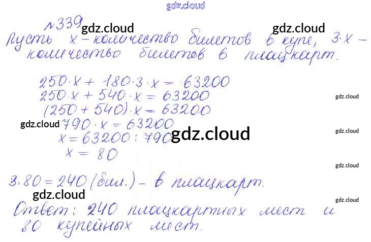Ответ на задание 339 Сборник задач и упражнений Математика за 5 (пятый) класс Гамбарин, Зубарева 2011 ФГОС онлайн и без номера телефона.