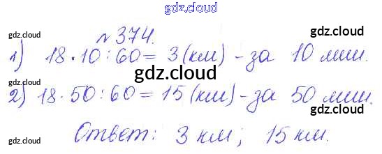 Ответ на задание 374 Сборник задач и упражнений Математика за 5 (пятый) класс Гамбарин, Зубарева 2011 ФГОС онлайн и без номера телефона.