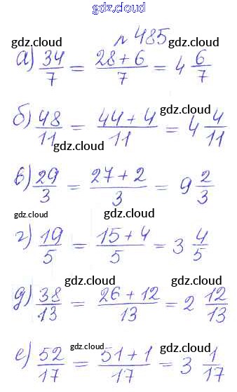 Ответ на задание 485 Сборник задач и упражнений Математика за 5 (пятый) класс Гамбарин, Зубарева 2011 ФГОС онлайн и без номера телефона.