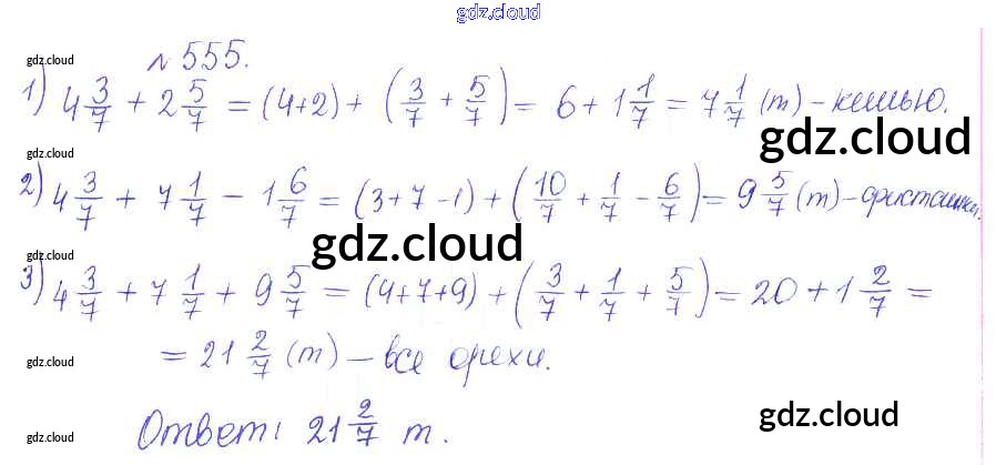 Ответ на задание 555 Сборник задач и упражнений Математика за 5 (пятый) класс Гамбарин, Зубарева 2011 ФГОС онлайн и без номера телефона.