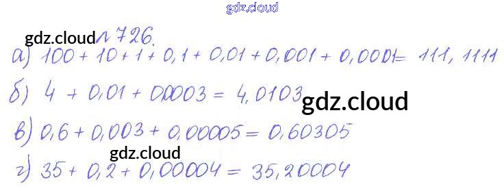 Ответ на задание 726 Сборник задач и упражнений Математика за 5 (пятый) класс Гамбарин, Зубарева 2011 ФГОС онлайн и без номера телефона.