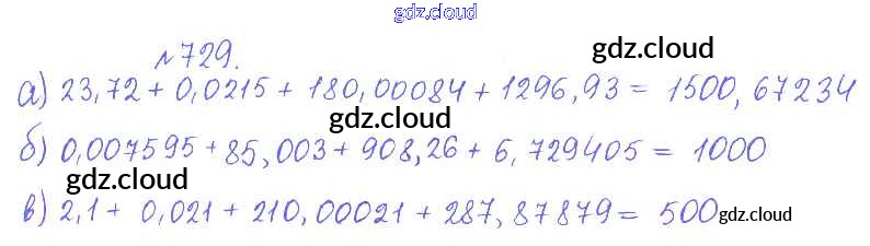 Ответ на задание 729 Сборник задач и упражнений Математика за 5 (пятый) класс Гамбарин, Зубарева 2011 ФГОС онлайн и без номера телефона.