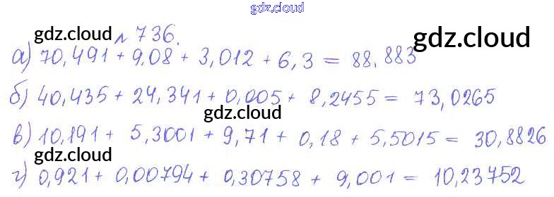 Ответ на задание 736 Сборник задач и упражнений Математика за 5 (пятый) класс Гамбарин, Зубарева 2011 ФГОС онлайн и без номера телефона.