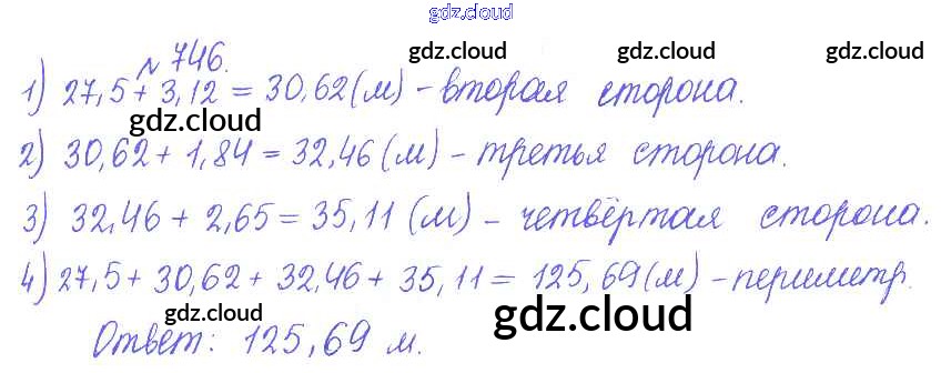 Ответ на задание 746 Сборник задач и упражнений Математика за 5 (пятый) класс Гамбарин, Зубарева 2011 ФГОС онлайн и без номера телефона.