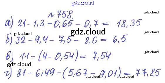Ответ на задание 758 Сборник задач и упражнений Математика за 5 (пятый) класс Гамбарин, Зубарева 2011 ФГОС онлайн и без номера телефона.