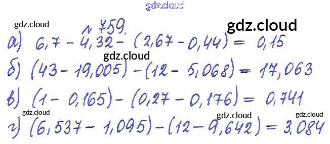 Ответ на задание 759 Сборник задач и упражнений Математика за 5 (пятый) класс Гамбарин, Зубарева 2011 ФГОС онлайн и без номера телефона.