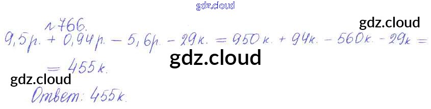 Ответ на задание 766 Сборник задач и упражнений Математика за 5 (пятый) класс Гамбарин, Зубарева 2011 ФГОС онлайн и без номера телефона.