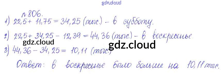 Ответ на задание 806 Сборник задач и упражнений Математика за 5 (пятый) класс Гамбарин, Зубарева 2011 ФГОС онлайн и без номера телефона.