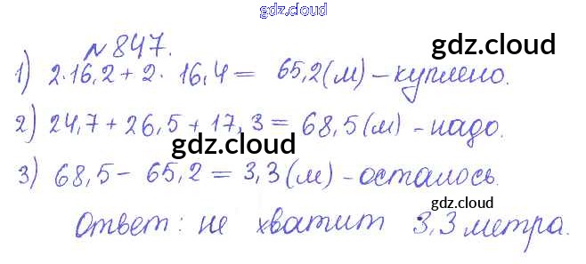 Ответ на задание 847 Сборник задач и упражнений Математика за 5 (пятый) класс Гамбарин, Зубарева 2011 ФГОС онлайн и без номера телефона.