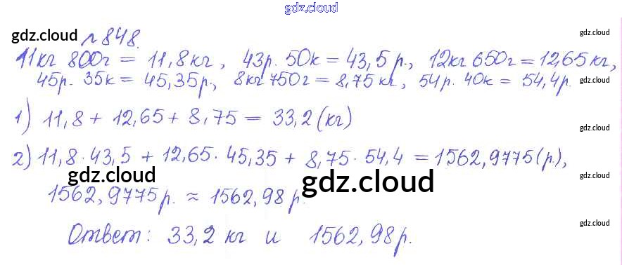 Ответ на задание 848 Сборник задач и упражнений Математика за 5 (пятый) класс Гамбарин, Зубарева 2011 ФГОС онлайн и без номера телефона.