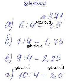 Ответ на задание 871 Сборник задач и упражнений Математика за 5 (пятый) класс Гамбарин, Зубарева 2011 ФГОС онлайн и без номера телефона.