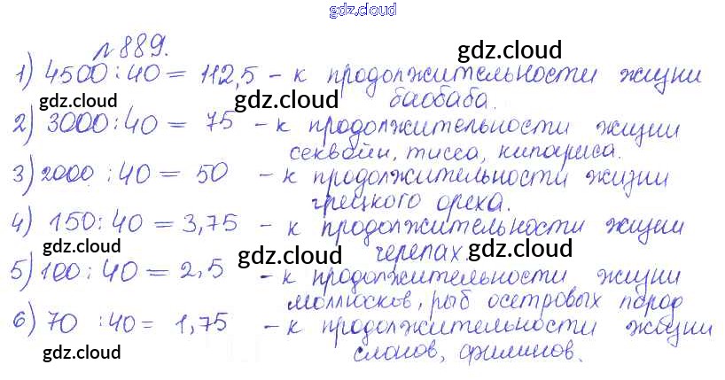 Ответ на задание 889 Сборник задач и упражнений Математика за 5 (пятый) класс Гамбарин, Зубарева 2011 ФГОС онлайн и без номера телефона.