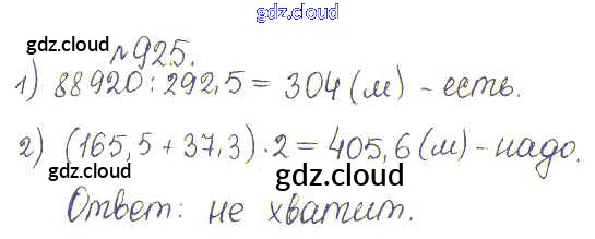 Ответ на задание 925 Сборник задач и упражнений Математика за 5 (пятый) класс Гамбарин, Зубарева 2011 ФГОС онлайн и без номера телефона.