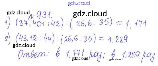 Ответ на задание 931 Сборник задач и упражнений Математика за 5 (пятый) класс Гамбарин, Зубарева 2011 ФГОС онлайн и без номера телефона.