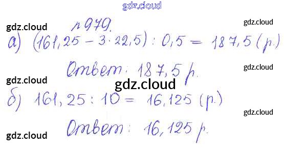 Ответ на задание 979 Сборник задач и упражнений Математика за 5 (пятый) класс Гамбарин, Зубарева 2011 ФГОС онлайн и без номера телефона.