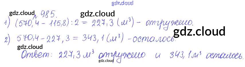 Ответ на задание 985 Сборник задач и упражнений Математика за 5 (пятый) класс Гамбарин, Зубарева 2011 ФГОС онлайн и без номера телефона.