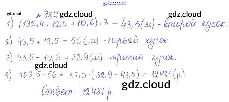 Ответ на задание 987 Сборник задач и упражнений Математика за 5 (пятый) класс Гамбарин, Зубарева 2011 ФГОС онлайн и без номера телефона.