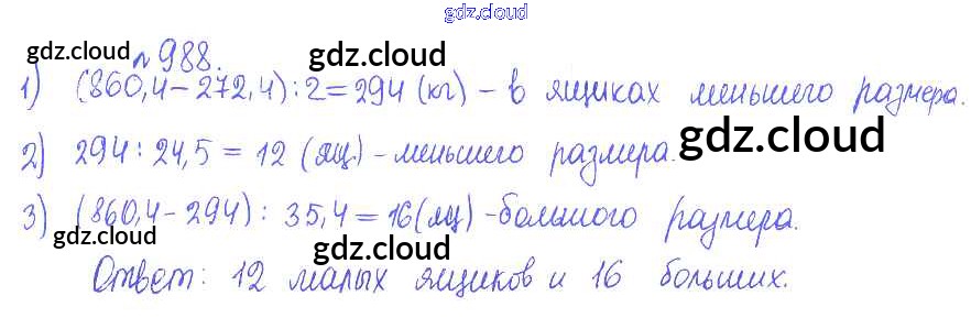 Ответ на задание 988 Сборник задач и упражнений Математика за 5 (пятый) класс Гамбарин, Зубарева 2011 ФГОС онлайн и без номера телефона.