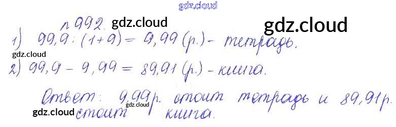 Ответ на задание 992 Сборник задач и упражнений Математика за 5 (пятый) класс Гамбарин, Зубарева 2011 ФГОС онлайн и без номера телефона.