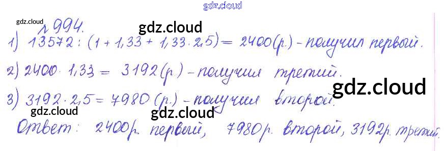 Ответ на задание 994 Сборник задач и упражнений Математика за 5 (пятый) класс Гамбарин, Зубарева 2011 ФГОС онлайн и без номера телефона.