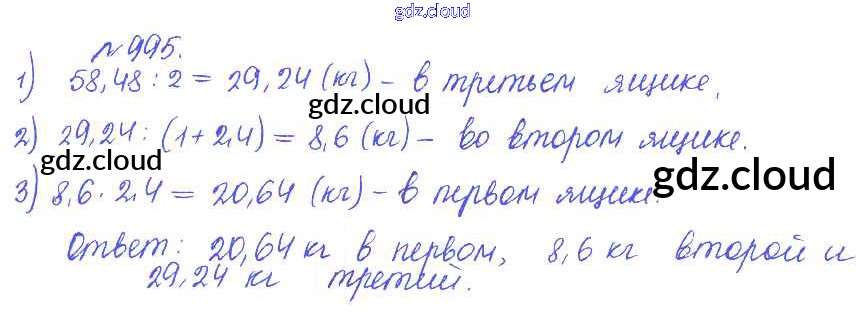 Ответ на задание 995 Сборник задач и упражнений Математика за 5 (пятый) класс Гамбарин, Зубарева 2011 ФГОС онлайн и без номера телефона.
