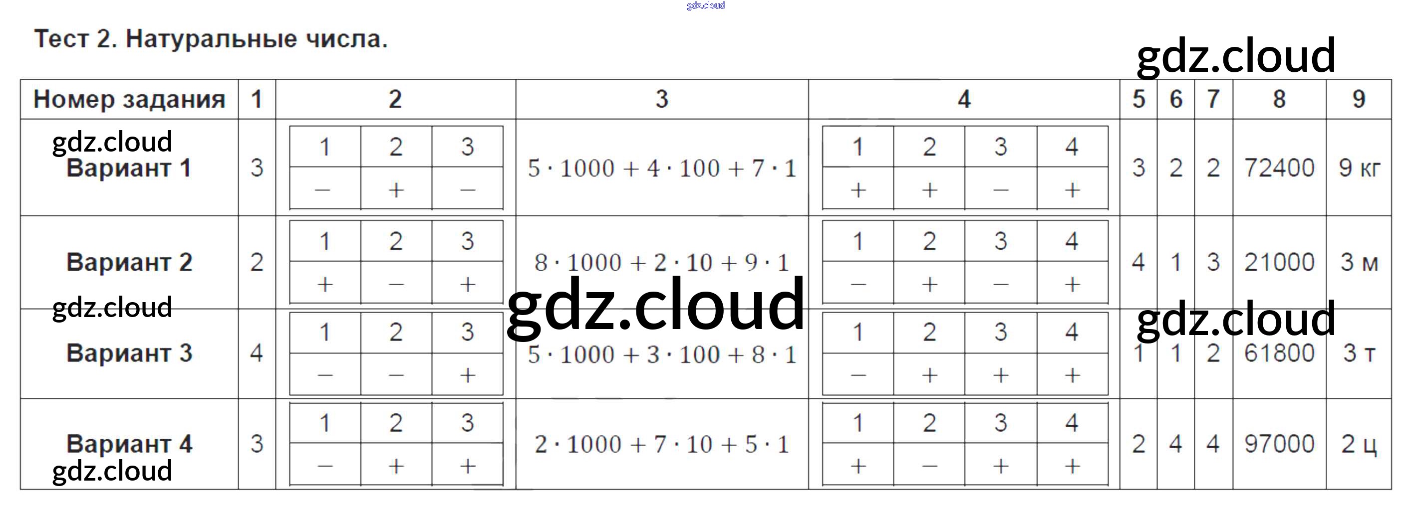 Ответ на задание Тест №2. Натуральные числа Тематические тесты Математика за 5 (пятый) класс Кузнецова, Минаева, Рослова, Суворова 2018