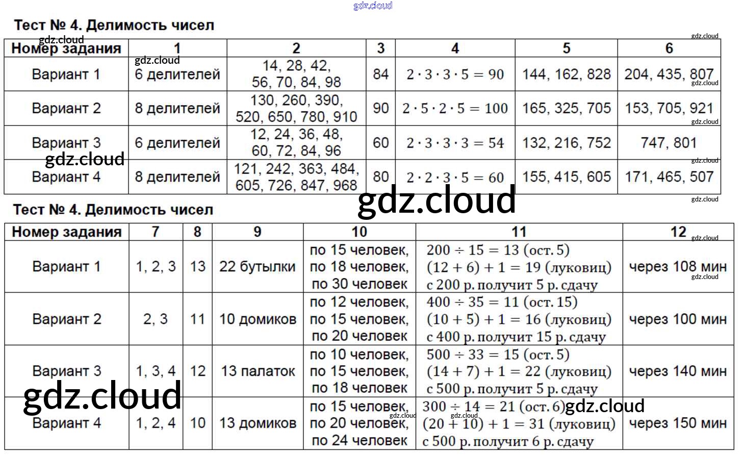 Ответ на задание Тест №4. Делимость чисел Тесты Математика за 5 (пятый) класс Минаева УМК 2016 ФГОС онлайн и без номера телефона.