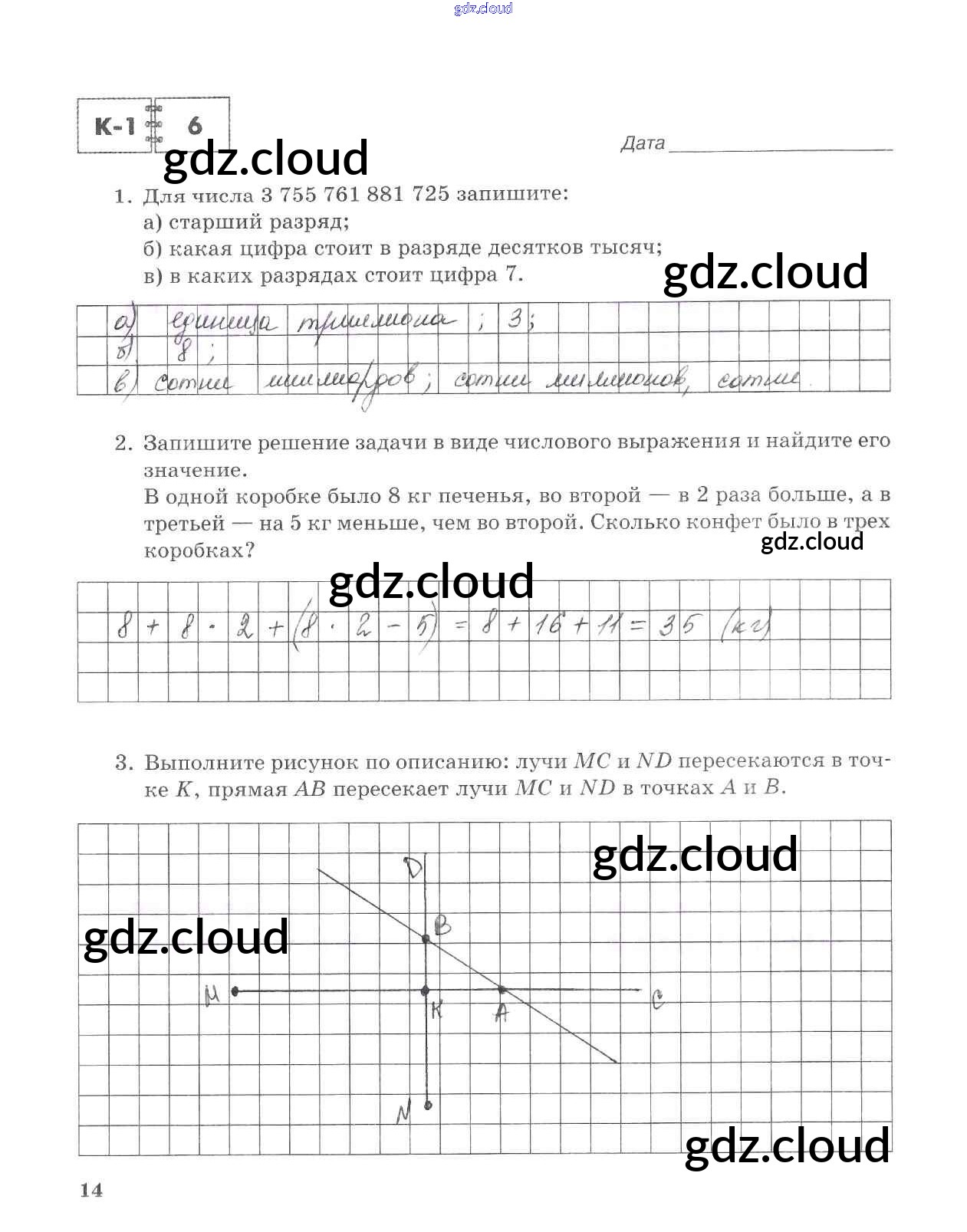 Ответ на задание стр.14 Тетрадь для контрольных работ Математика за 5 (пятый) класс Зубарева, Лепешонкова 2018 Часть 1, 2