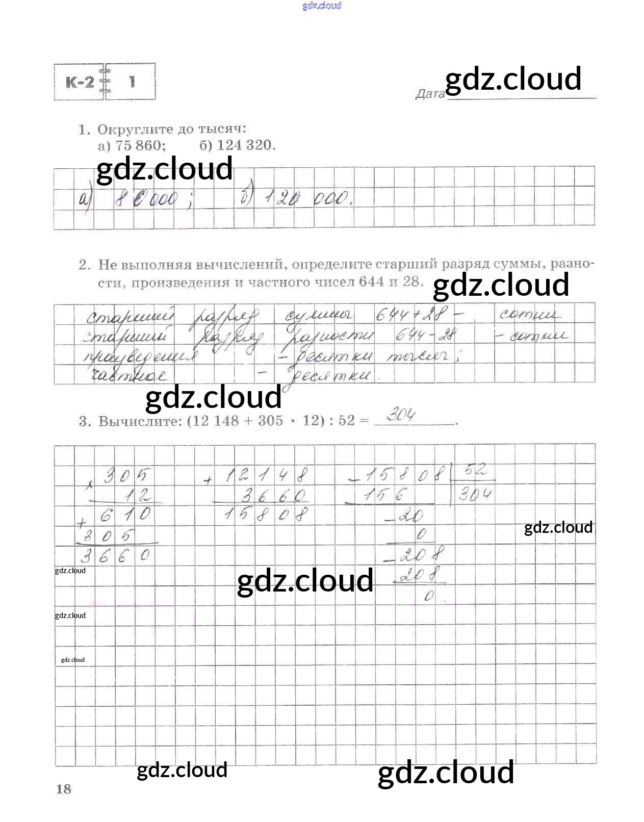 Ответ на задание стр.18 Тетрадь для контрольных работ Математика за 5 (пятый) класс Зубарева, Лепешонкова 2018 Часть 1, 2