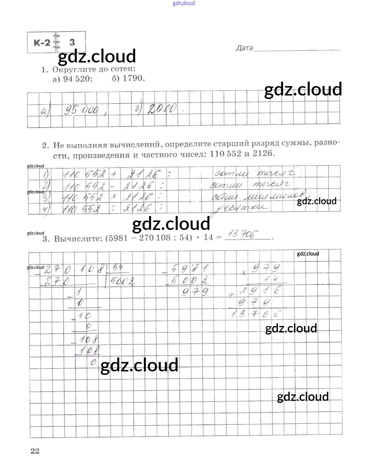 Ответ на задание стр.22 Тетрадь для контрольных работ Математика за 5 (пятый) класс Зубарева, Лепешонкова 2018 Часть 1, 2