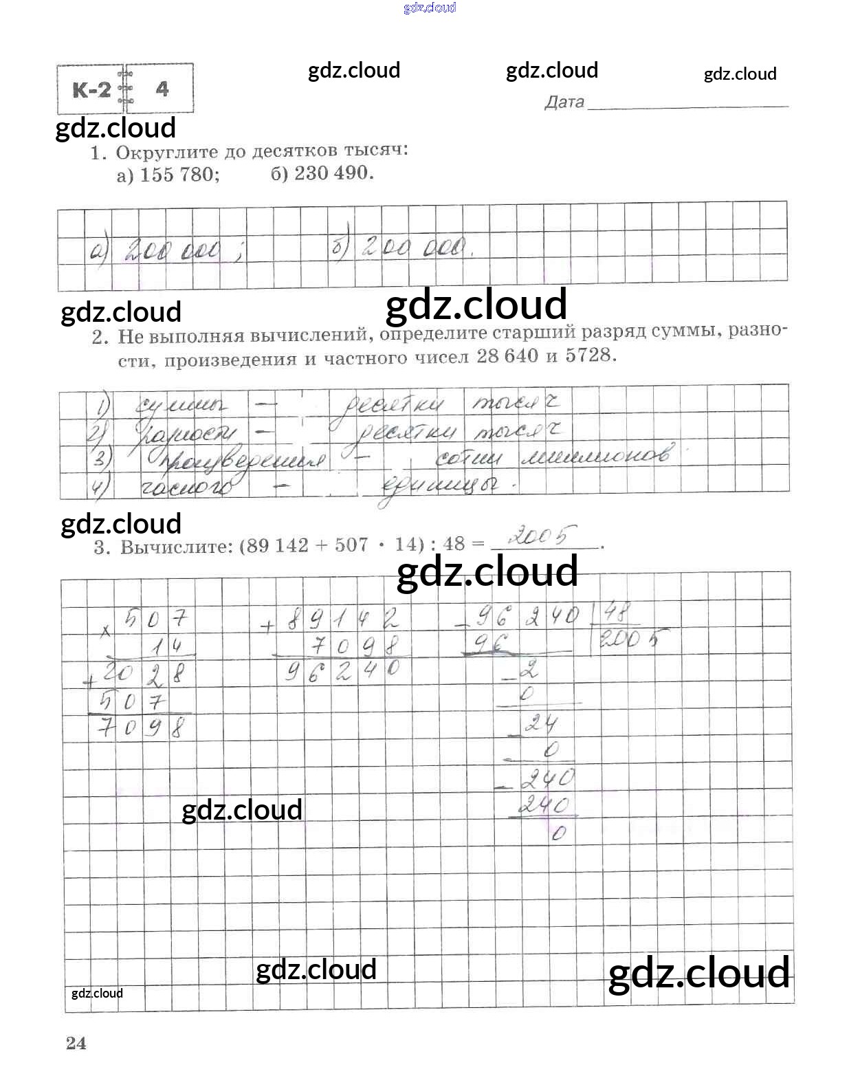 Ответ на задание стр.24 Тетрадь для контрольных работ Математика за 5 (пятый) класс Зубарева, Лепешонкова 2018 Часть 1, 2