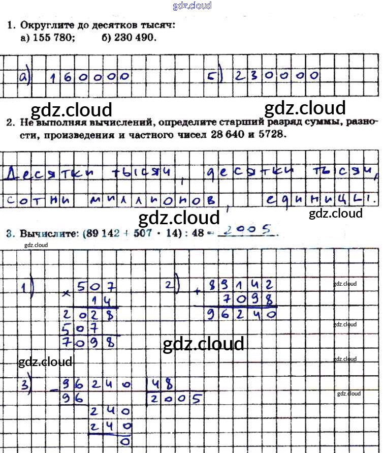 Ответы к Части 1 по Математике 5 класс Тетрадь для контрольных работ Зубарева Часть 1, 2 Мнемозина