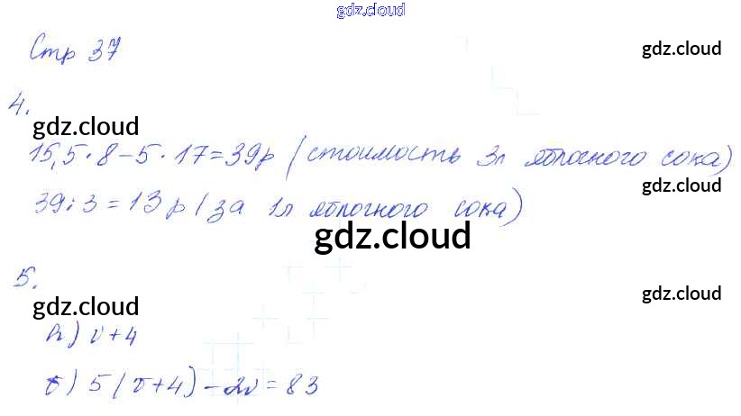 Ответ на задание стр.37 Тетрадь для контрольных работ Математика за 5 (пятый) класс Зубарева, Лепешонкова 2018 Часть 1, 2