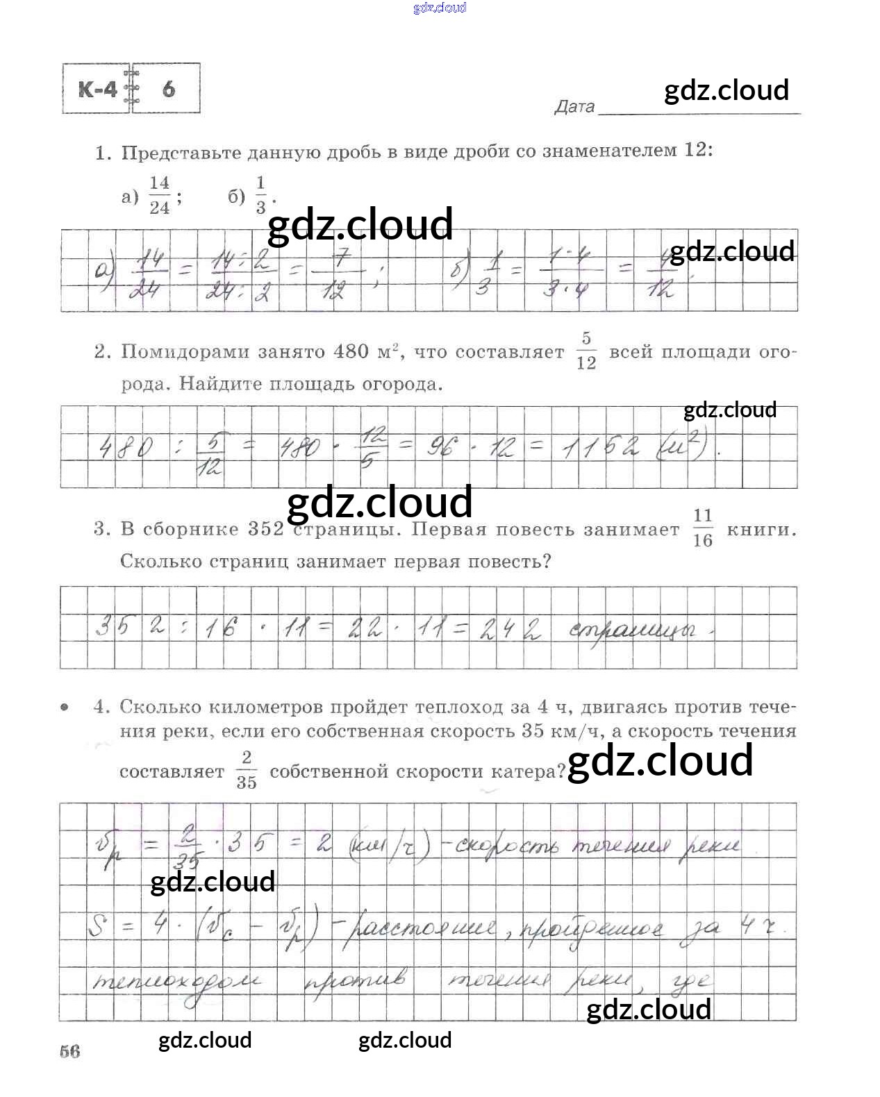 Ответ на задание стр.56 Тетрадь для контрольных работ Математика за 5 (пятый) класс Зубарева, Лепешонкова 2018 Часть 1, 2
