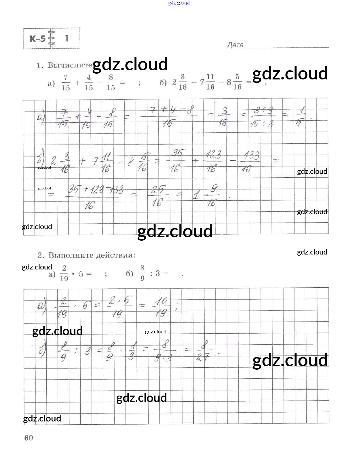 Ответ на задание стр.60 Тетрадь для контрольных работ Математика за 5 (пятый) класс Зубарева, Лепешонкова 2018 Часть 1, 2