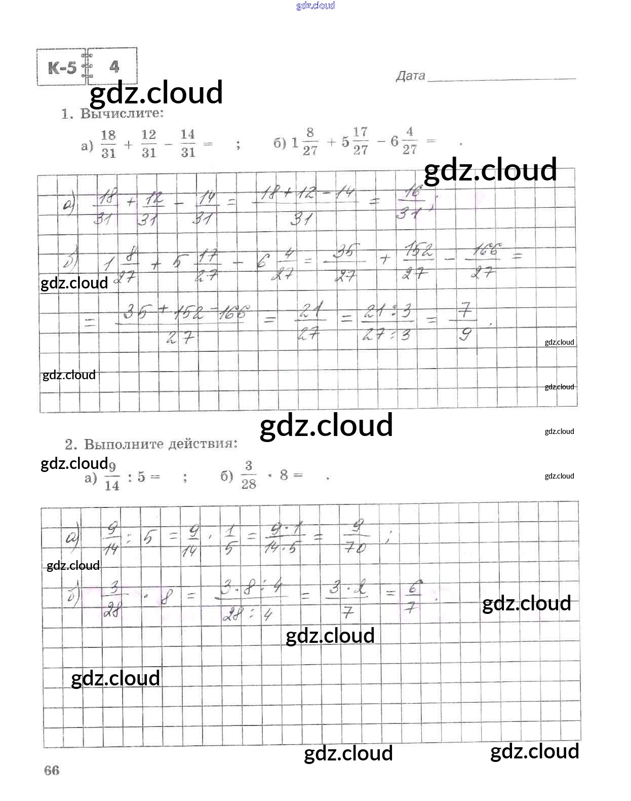 Ответ на задание стр.66 Тетрадь для контрольных работ Математика за 5 (пятый) класс Зубарева, Лепешонкова 2018 Часть 1, 2