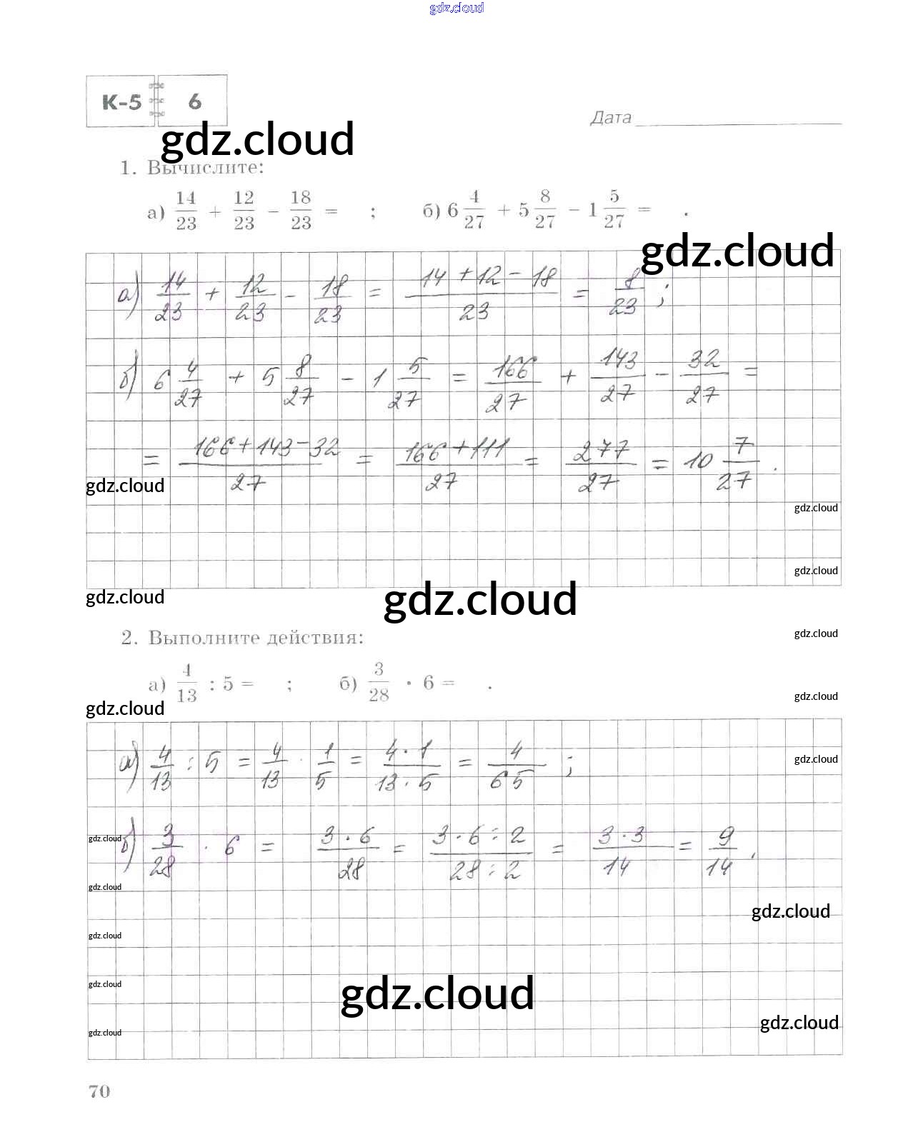 Ответ на задание стр.70 Тетрадь для контрольных работ Математика за 5 (пятый) класс Зубарева, Лепешонкова 2018 Часть 1, 2