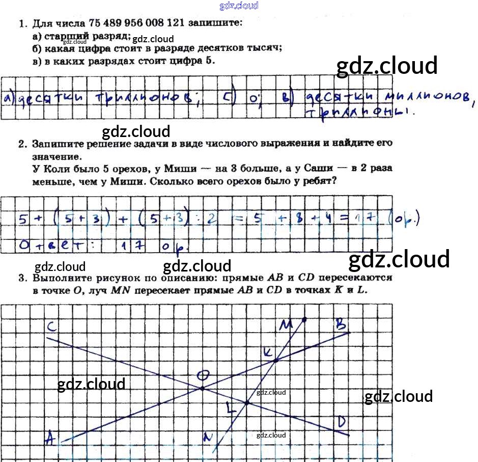 Ответы к Части 1 по Математике 5 класс Тетрадь для контрольных работ Зубарева Часть 1, 2 Мнемозина