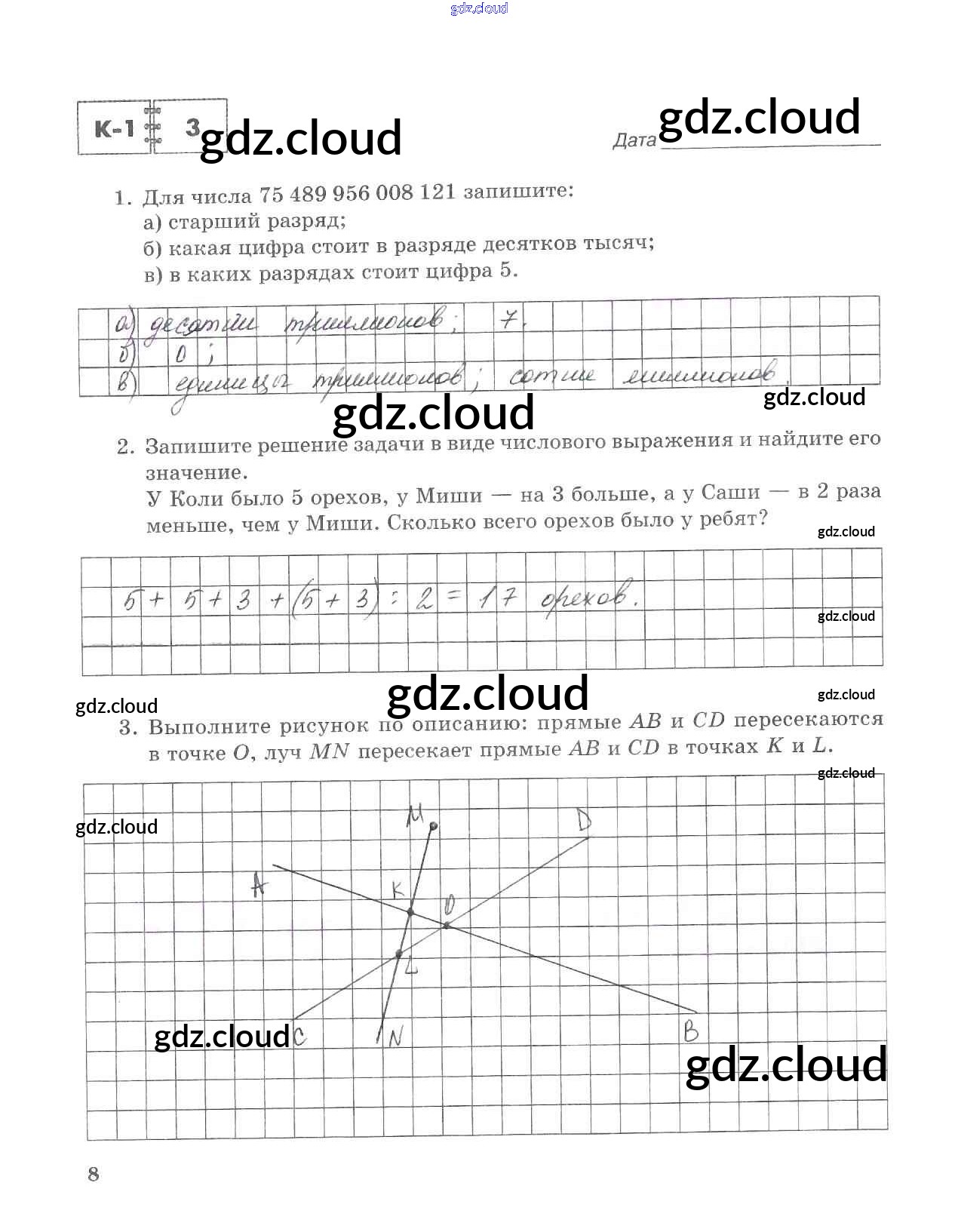 Ответ на задание стр.8 Тетрадь для контрольных работ Математика за 5 (пятый) класс Зубарева, Лепешонкова 2018 Часть 1, 2