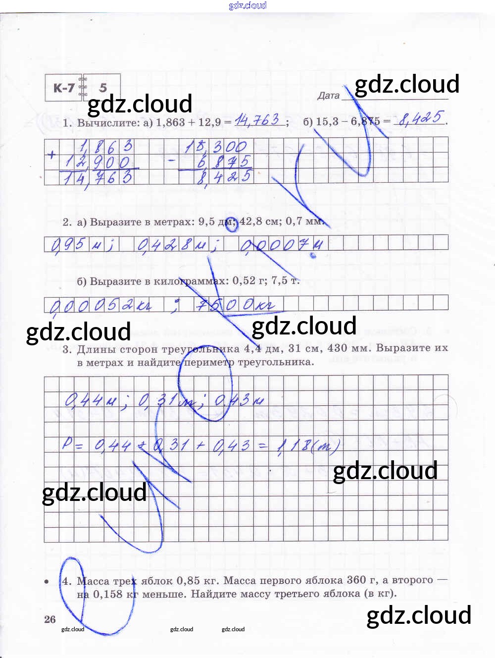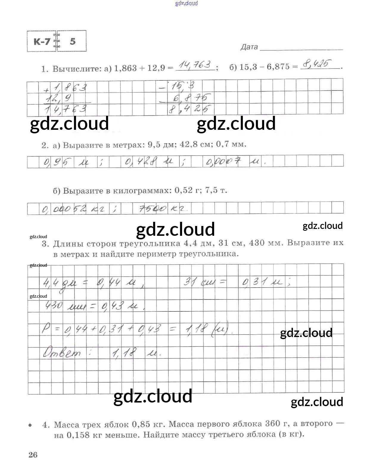 Ответ на задание стр.26 Тетрадь для контрольных работ Математика за 5 (пятый) класс Зубарева, Лепешонкова 2018 Часть 1, 2
